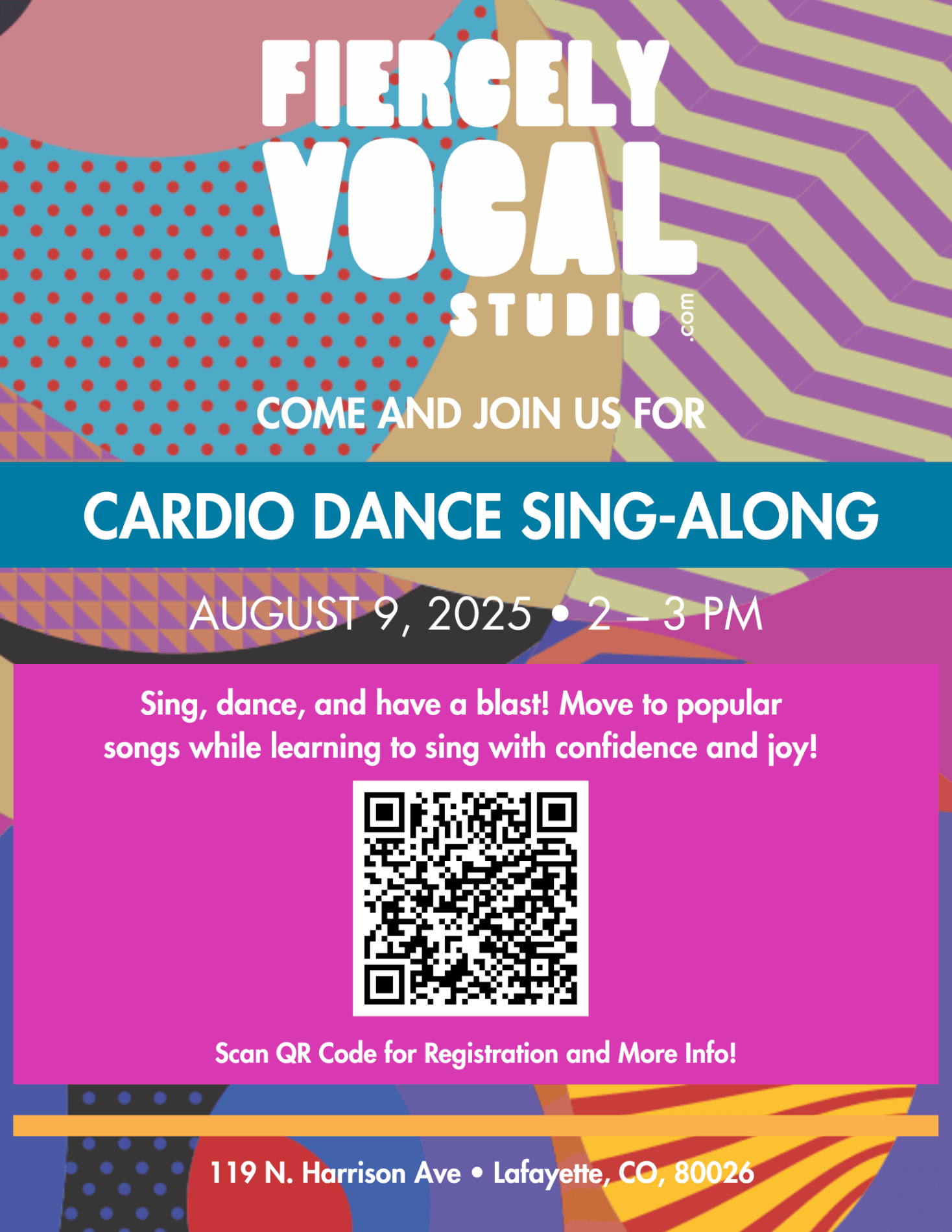 Experience the ultimate confidence boost and creative energy at Fiercely Vocal Studio’s Cardio Dance Sing-Along! Designed for adults but welcoming participants aged 12 and up (with those under 16 accompanied by an adult), this class is perfect for anyone who wants to move and sing.