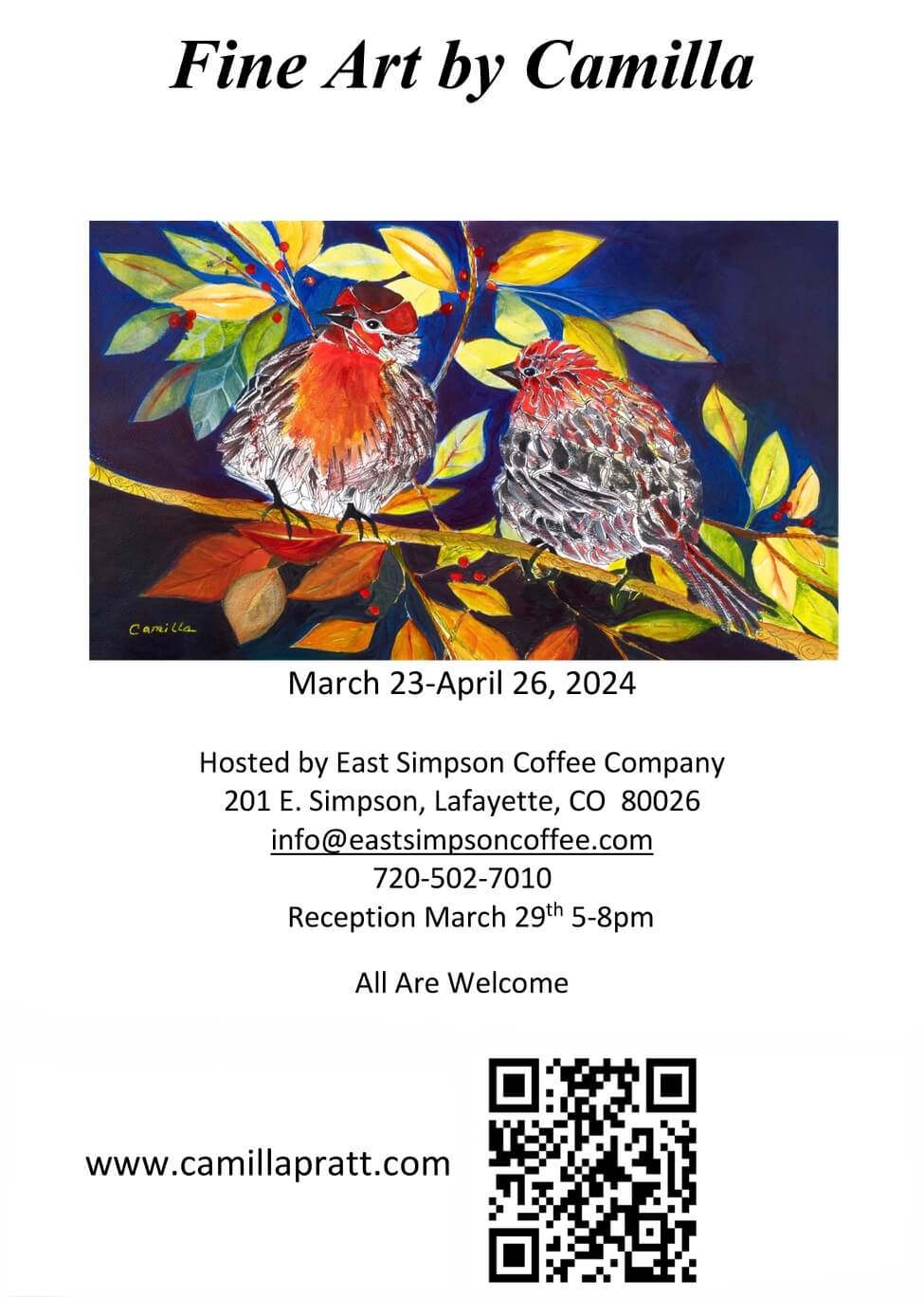 East Simpson Coffee Company is pleased to be hosting the works of artist, Camilla Pratt. On display March 23-April 26, 2024.
