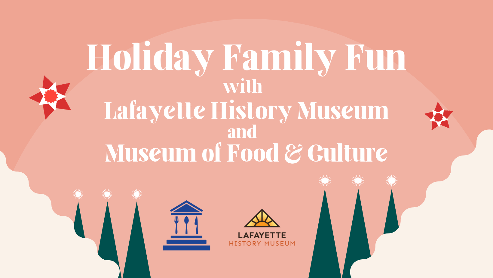 The Lafayette History Museum is excited to partner with the Museum of Food & Culture to host a holiday event full of fun for the whole family! Join us at the Lafayette History Museum to explore our exhibits, including our hands-on kid-friendly displays, plus activities that will get everyone into the holiday spirit.
