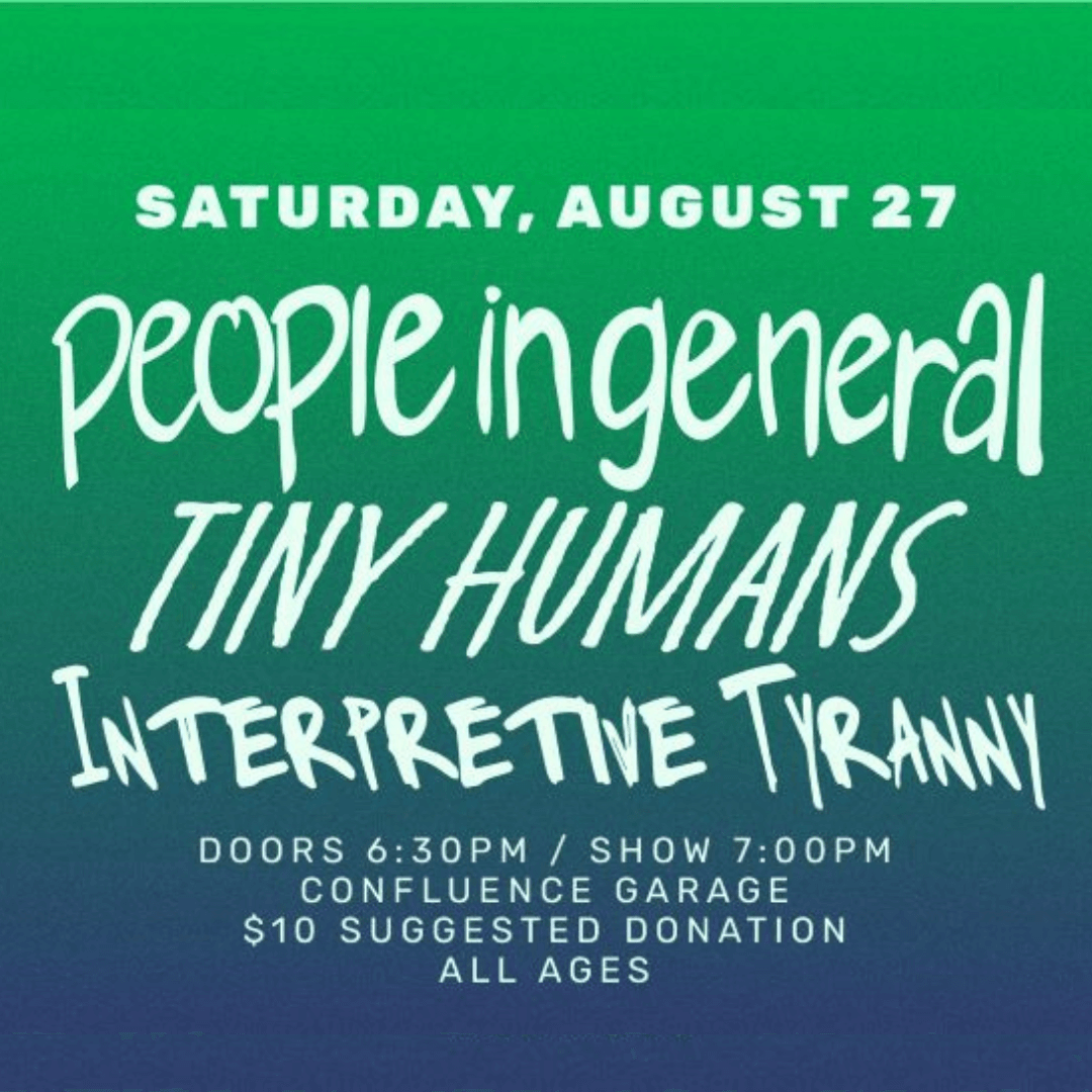 Tiny Humans – High energy 3 piece band out of Denver with a mix of emo, garage rock, punk and grunge. Tiny Humans consists of Chris Mercer on guitar and vocals, Dave Wolfkowski on bass and Zack Noe on drums. Formed in 2020 over the pandemic, after Chris broke up their previous band Sliver. Dave also plays in a band called Swindlin Hearts and Zack use to play in a band called Alter Girls.
