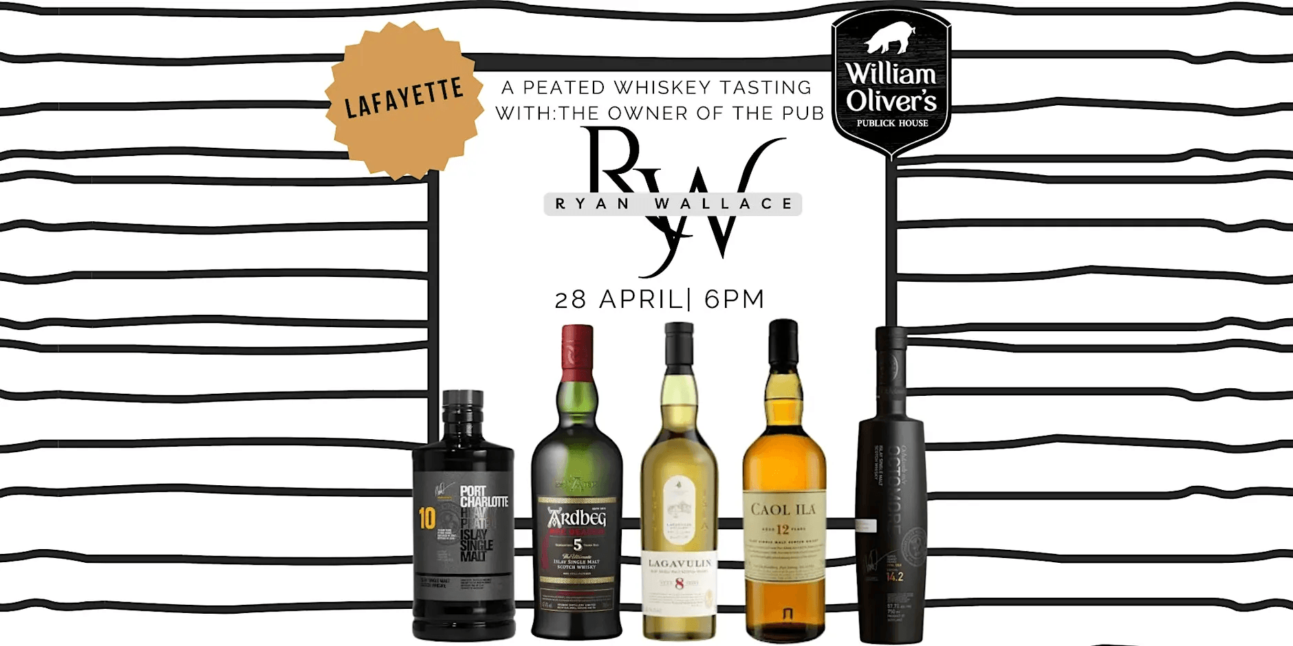 Explore bold, smoky peated Scotch with Ryan Wallace. Taste five iconic Islay pours and discover your perfect level of smoke.Spend an evening exploring the rich, smoky character of peated Scotch whisky with the owner of William Oliver’s Ryan Wallace. Together, you’ll sample a curated lineup of distinctive drams that highlight different expressions of smoke, sea air, and bold flavor. The lineup includes: