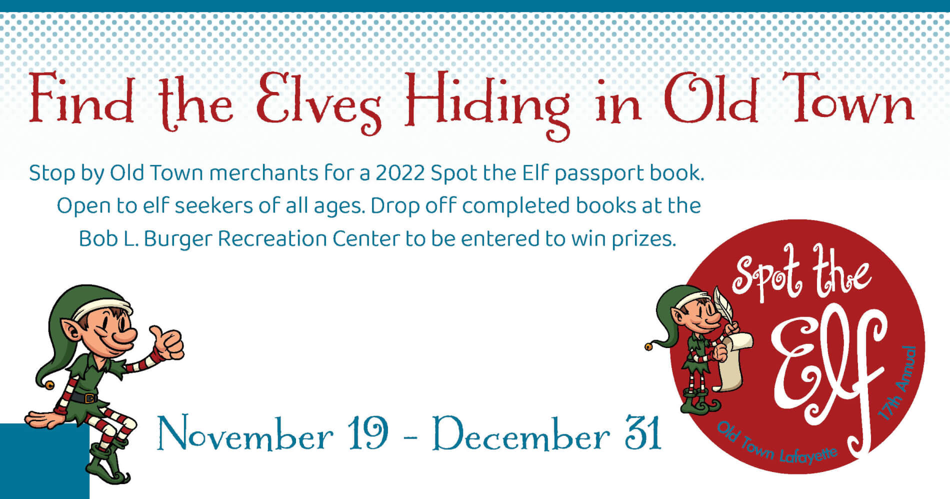 Spot the Elves hiding in Old Town Lafayette Businesses! Pick up a book at any participating business. Get at least 15 stamps in your book, turn it into the Rec Center before December 31 and win prizes!