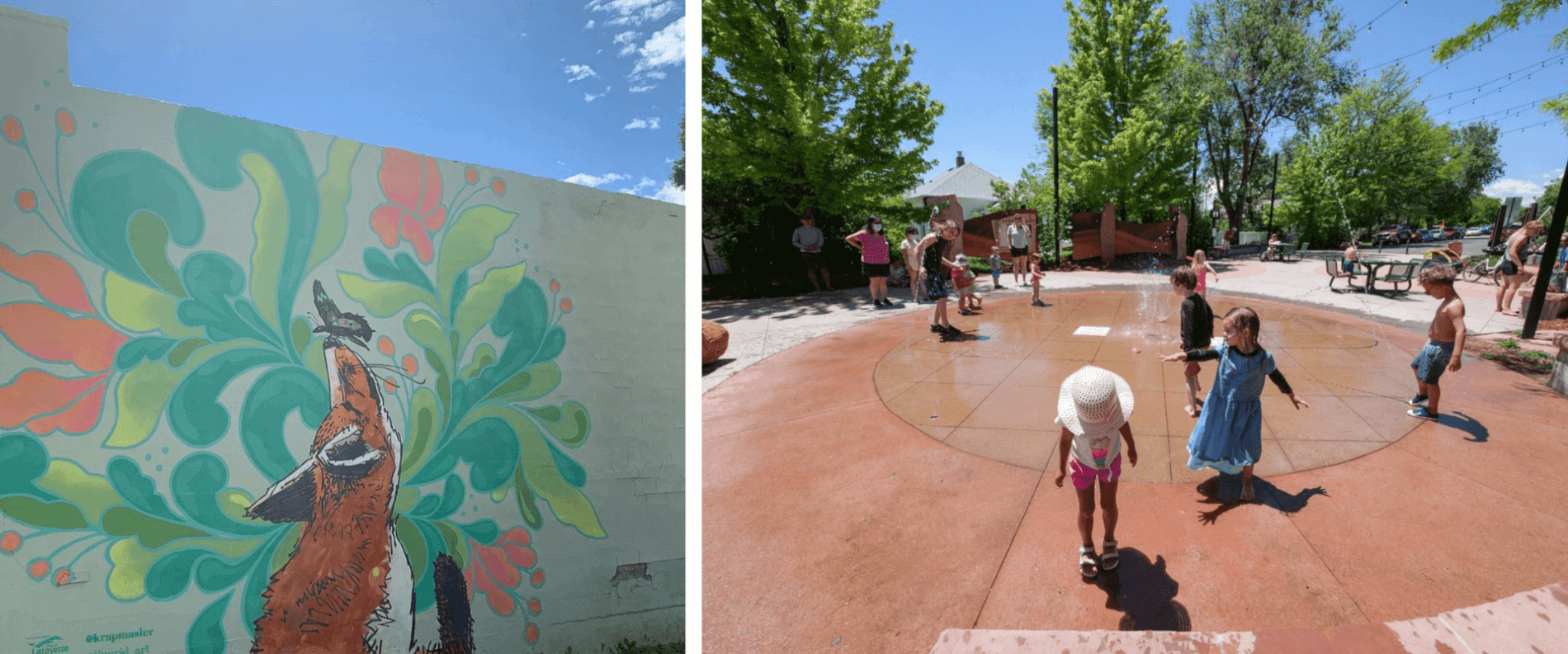 Enjoy the afternoon on foot by exploring one of the many trails that surround Old Town Lafayette. You can discover a list of our walking trails on our website. The trails are dog friendly, so feel free to bring your furry friend to wander with you. If you’re visiting with kids or just looking to cool off, make a stop at the Festival Plaza’s splash pad, where laughter and joy abound and cooling off becomes an adventure.