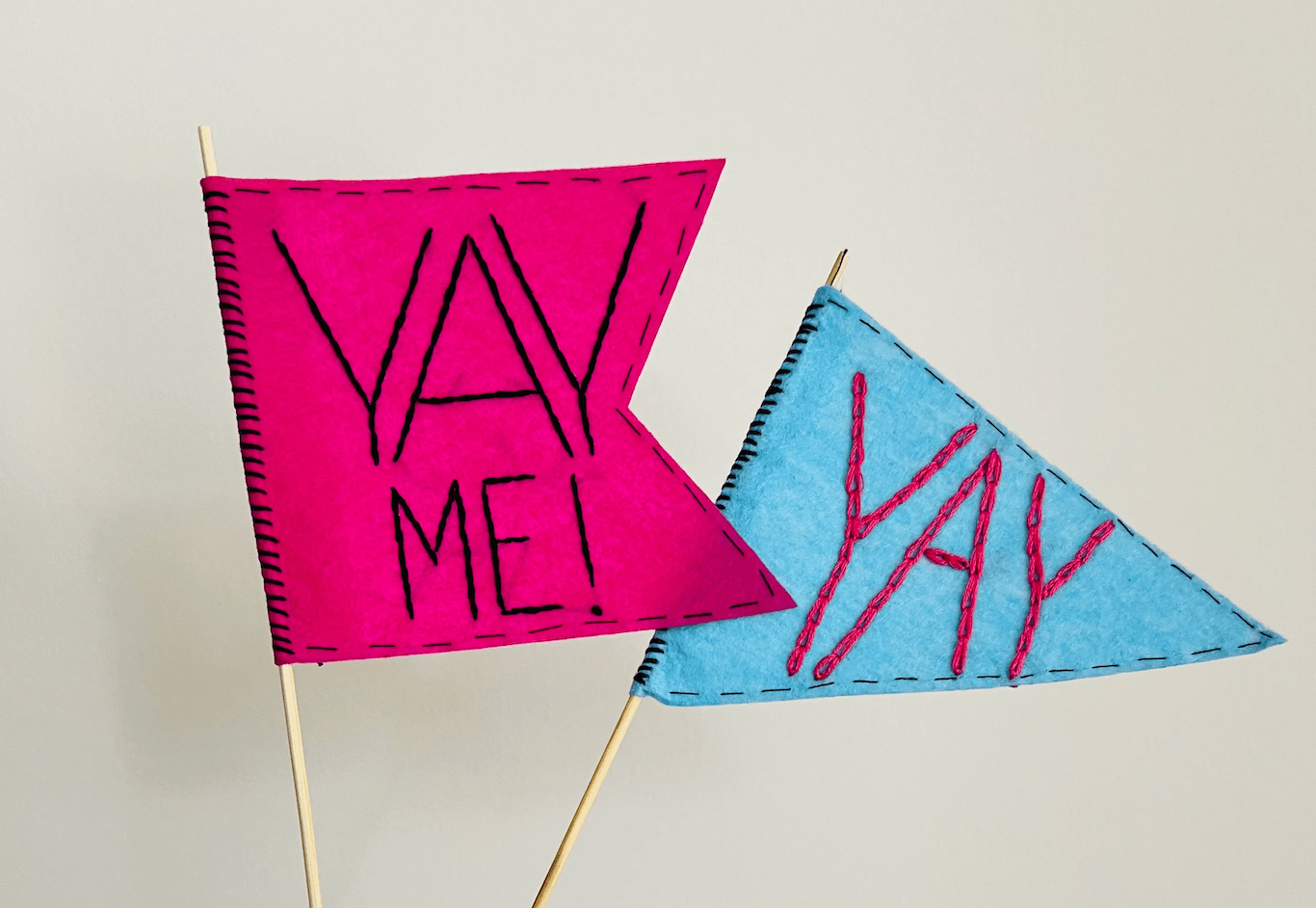 “Yay Flags” are small, handmade banners that display a word or phrase you want to put out into the world. It’s a simple, approachable project meant to help you express yourself — whether that’s joy, resistance, humor, or encouragement.